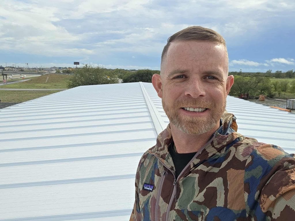 Above: GBR Founder and Owner Dan Gillean inspects a hail damaged metal roof on September 24, 2025.